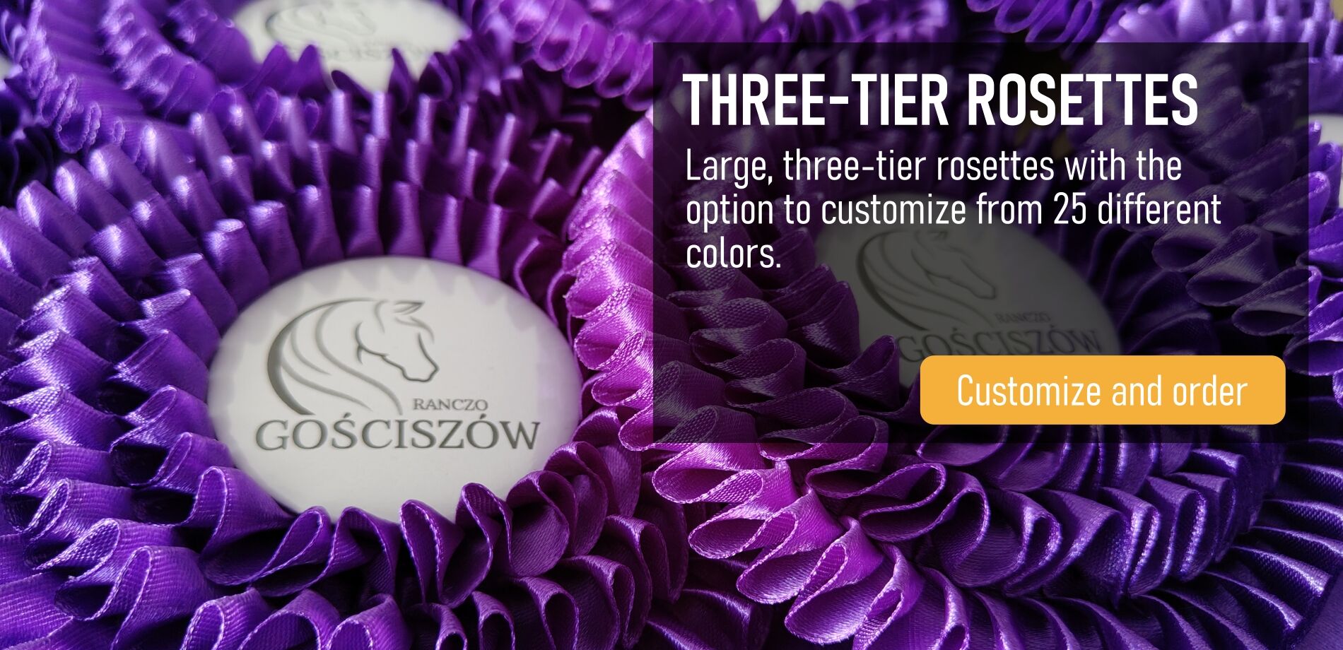 Triple Rosette #5 is a striking and elegant equestrian decoration, distinguished by its rich, three-row composition and the option...